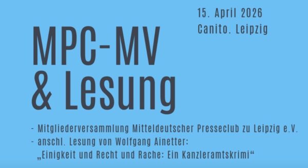 Am 4. Februar 2026 veranstaltete der Mitteldeutsche Presseclub zu Leipzig e.V. zusammen mit dem DJV Sachsen und dem „Stammtisch der Pressesprecherinnen und Pressesprecher Leipzig und Region“ zum ersten Mal einen gemeinsamen Jahresauftakt. Unter der Überschrift „Kommunikation im Fokus – Impuls… Weiterlesen →